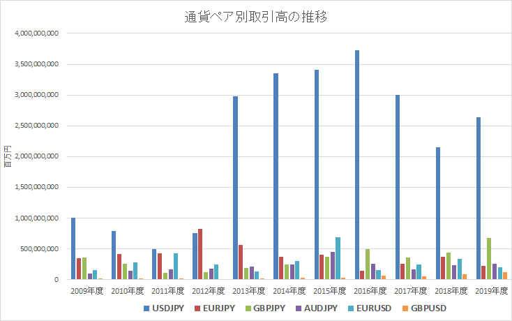 それでは最後に主要通貨ペア別の取引高の推移をご覧ください。