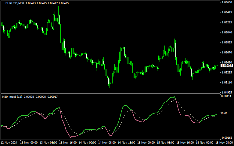 MACDはジェラルド・アペルの考案した指標で、日本語では「移動平均収束拡散法」と呼ばれます。2本のEMAの乖離からモメンタムを測定し、価格の勢いを判断するためのツールとして広く使われています。