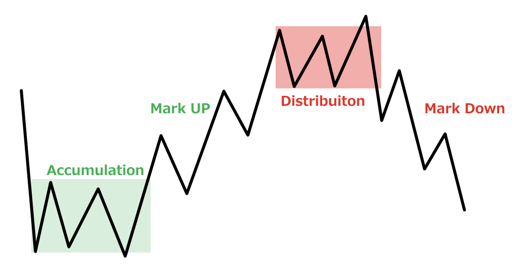 だからこそ、市場をダマしながらゆっくりと吸収してできるだけ安い価格でポジションを取っていく、というのがAccumulationになります。