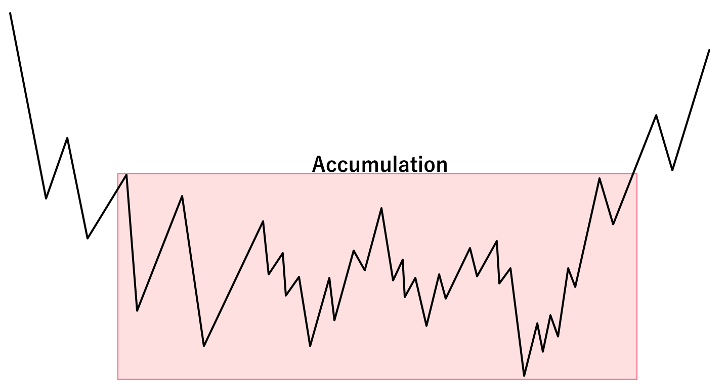 アキュムレーション(Accumulation)は下降トレンドの最終局面からレンジを経て反発するまでの流れになります。