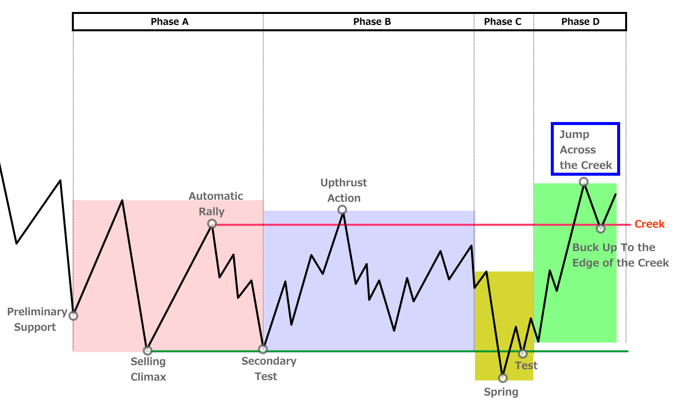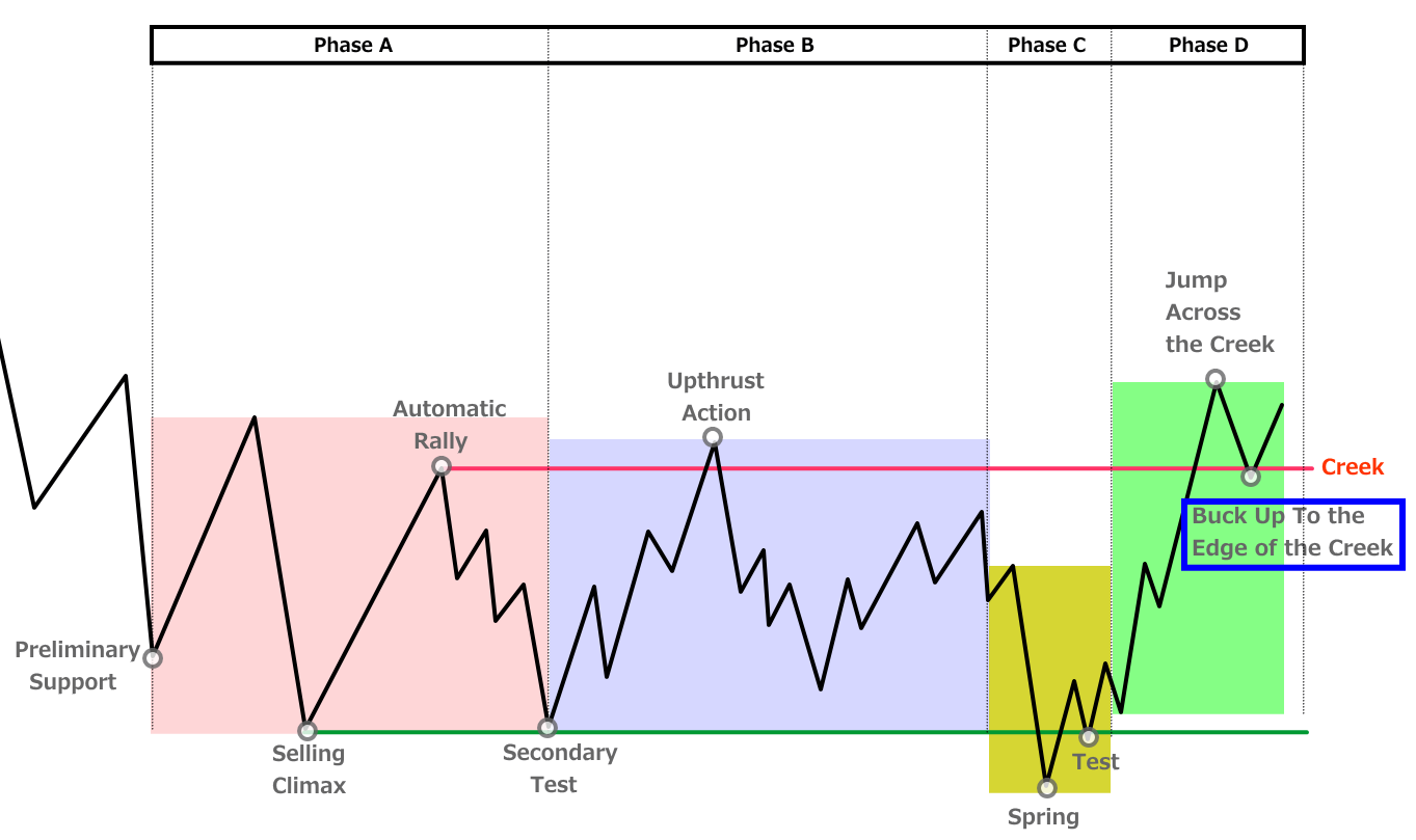 Phase A でつけたARの高値(Creek)をブレイクします。