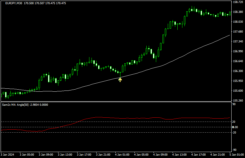 そこで今回はインジケーターを利用して移動平均線の角度をしっかりと定義します。