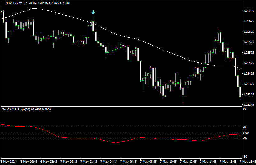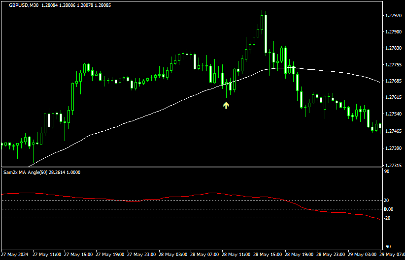 使用するインジケーターはInventory Retracement Barの記事でも利用した「angle of ma」です。