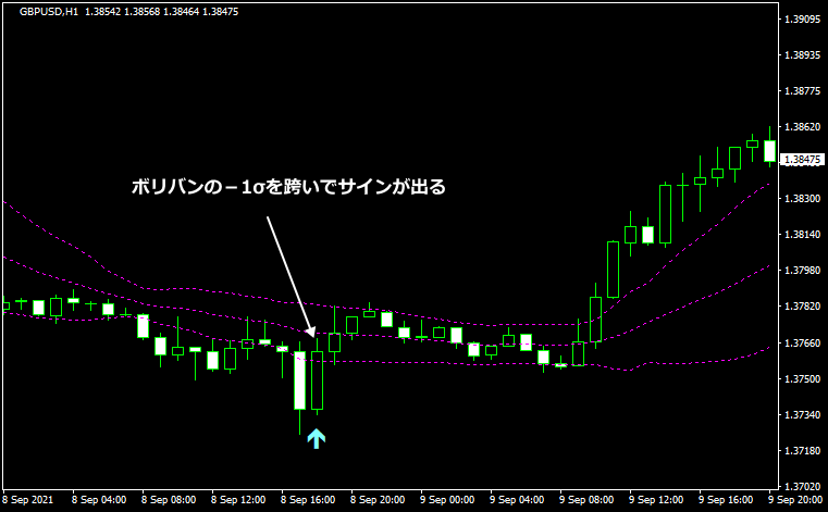 - ボリバンの-1σを跨ぐ足にASCTrendのロングが出たら買いのサイン
