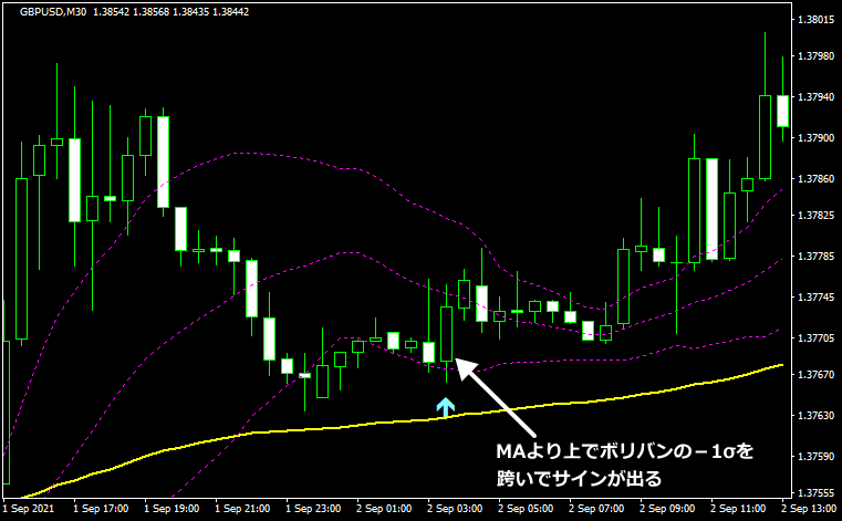 それでは作成したインジケーターのサインをご覧ください。