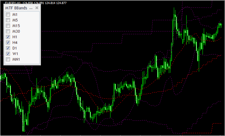 複数の時間足のボリンジャーバンドを同時に表示するインジケーターをご紹介します。