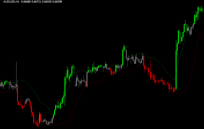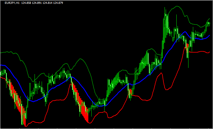 トレンドの勢いによってバンドの表示や色の変わるトレンドフォロー用のインジです。