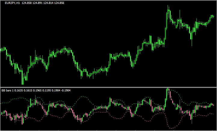 ローソク足とボリンジャーバンドをチャート下のサブウィンドウ部分に表示させるインジです。