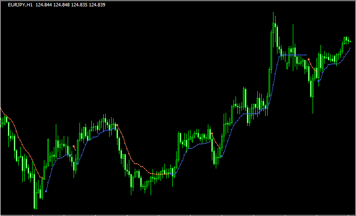 このインジの面白いのは移動平均線を常に水平にして表示してある点です。