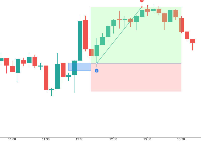 下位足のエントリーポイントとしてはフェアバリューギャップ(FVG)、オーダーブロック(Order Block)、ブレイカーブロック(Breaker Block)等がありますが、シンプルにFVGが分かりやすいかと思います。