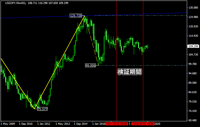 上の月足を見てもらえば分かると思いますが、この期間で勝てるように設計されたロジックであれば、寿命は長くないことは明らかです。
