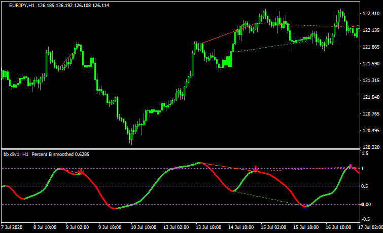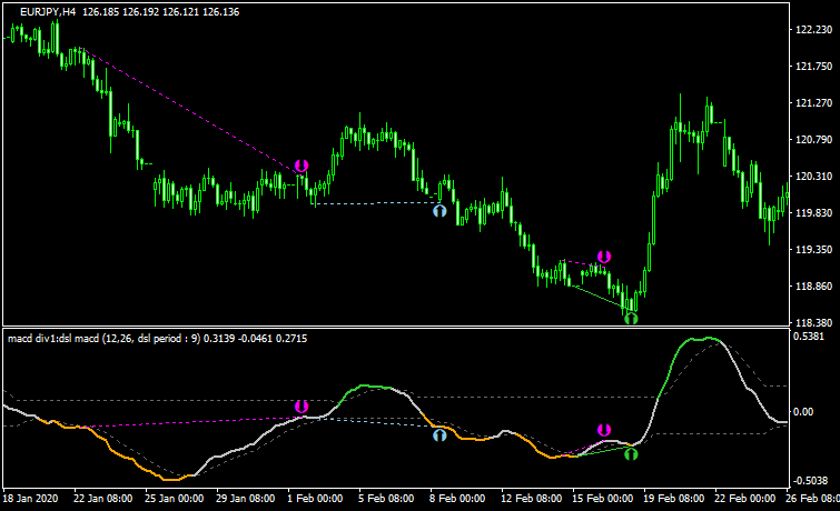 このインジケーターの大きな特徴は、レギュラーダイバージェンスとヒドゥンダイバージェンスを区別できる点にあります。