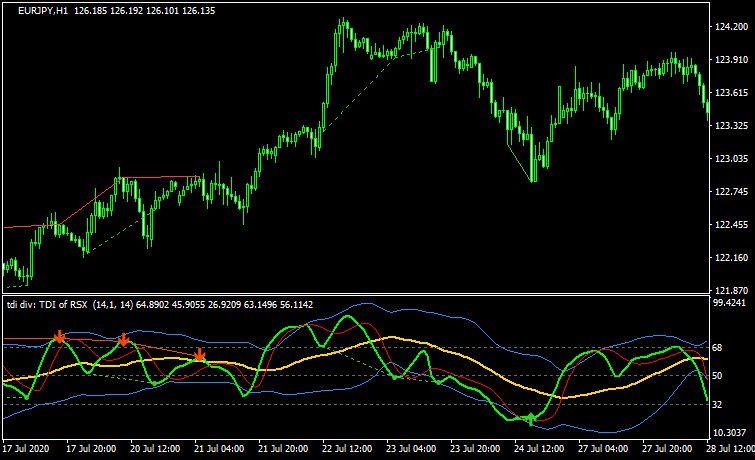 平滑化したTDI(Traders Dynamic index)のダイバージェンスを認識します。