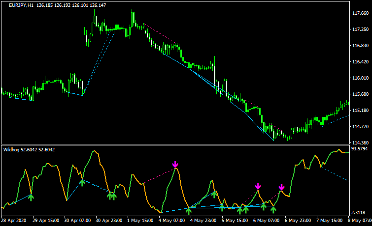 Wildhogは、現在のレートがレンジ幅の中でどれくらいの位置にあるのかを示すシンプルなオシレーターです。