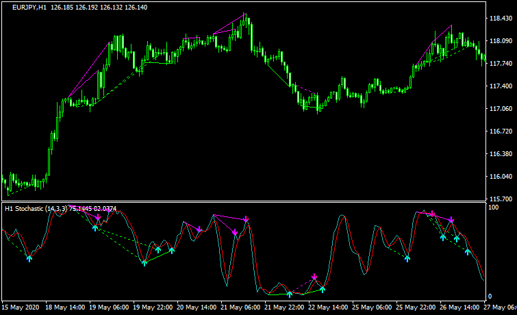 ストキャスティクスのダイバージェンスを示すインジケーター