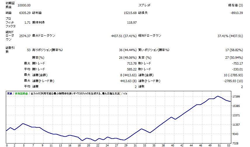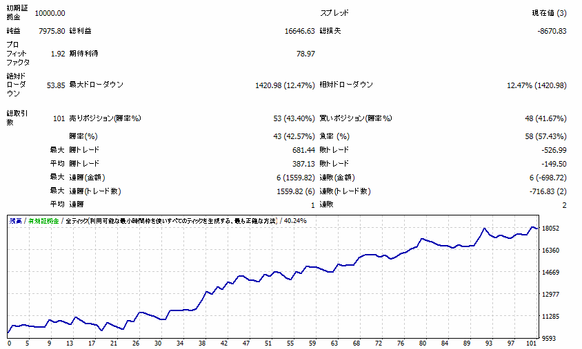 しかし、このEAが発表されてたのが2015年で、それ以降の期間で複数の通貨ペアや時間軸で明らかな優位性を見せている点を考えると、やはり優秀なEAだと思います。