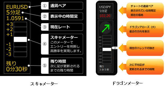 また、シグナルツールの解説を見ると、どうもドラゴンストラテジーに似ている点が多いですね。特に「スキャメーター」はドラゴンストラテジーの「ドラゴンメーター」に酷似しています。下に両者の画像を並べてみました。