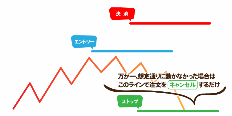 また、エントリーに引っかからなかった場合は、注文をキャンセルするレートも決まっています。