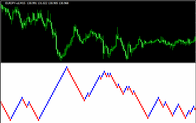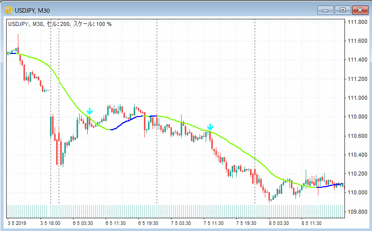 練行足を表示するインジケーターは多々ありますが、このインジはチャート下に練行足を表示します。MT4だと以下のように表示されます。