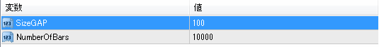 今回の検証では、パラメーター変更画面の「SizeGAP」の値を100にしています。