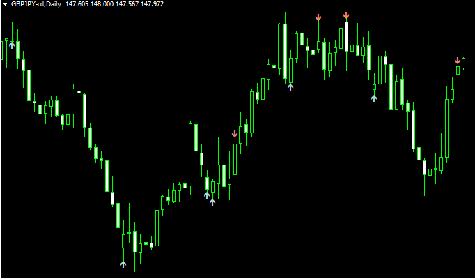このインジは窓が開いたところにサインが表示されます。