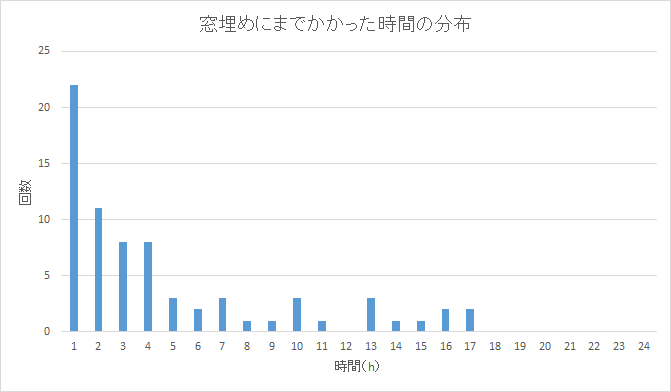 また、窓埋めにかかる時間の分布も調査する。
