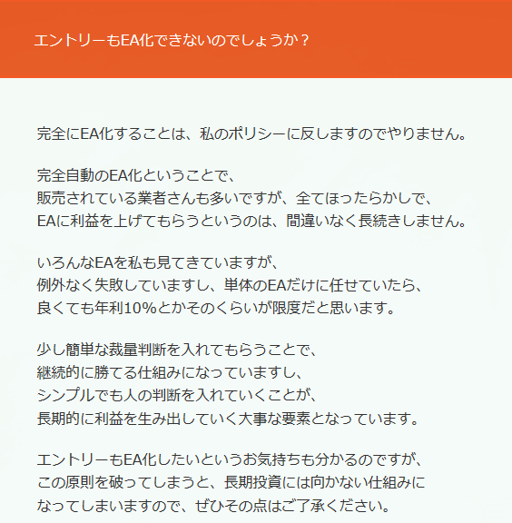 なぜ全部を自動化しないのかと言うと、エントリーに裁量が入るからです。