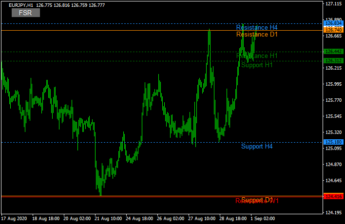 フラクタルを利用して4つの時間足のサポレジラインを表示するインジです。