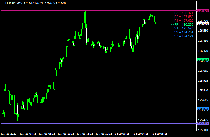 前日など決まった期間の高値安値等にラインを引くタイプ