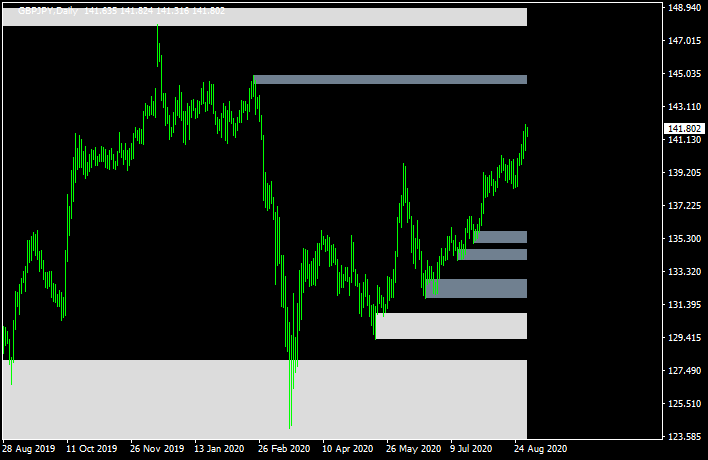 更には、チャートを過去にスクロールすると、その時々のサポレジゾーンも表示することができます。