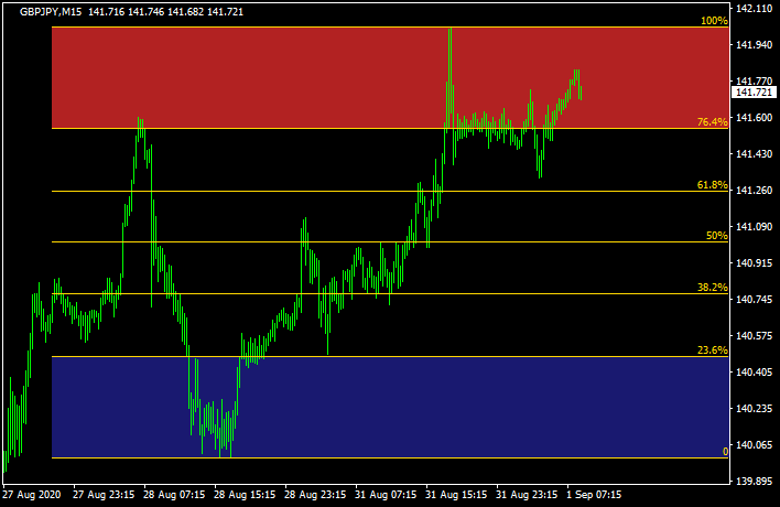 直近の高値安値をベースにしてフィボナッチを表示するインジです。