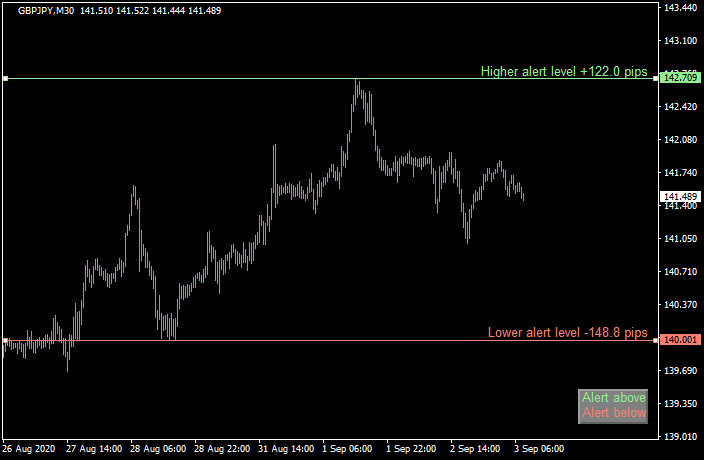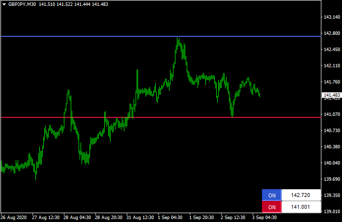 同じくチャート右下のボタンをクリックすると、アラートの鳴る水平線が表示できるインジです。