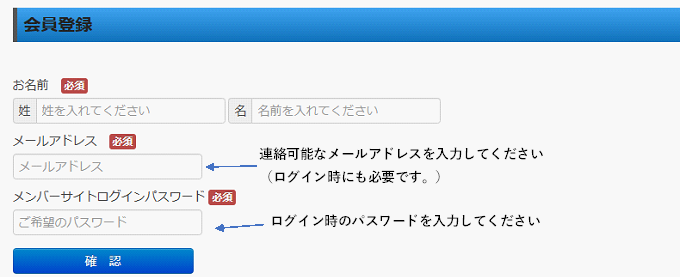 PDF内のURLをクリックして、PDF内に記載してあるパスワード(認証コード)を入力すると、以下のような登録ページに進みます。