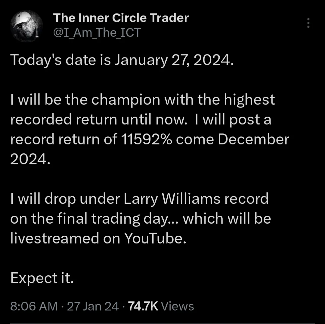 元々の性格なのかキャラ付けなのかは分かりませんが、ICTは「自分は相場のアルゴリズムを理解している」といった発言や、他のトレーダーを挑発するような発言も多く、カルトともいえる信奉者だけでなく多くのアンチも抱えています。