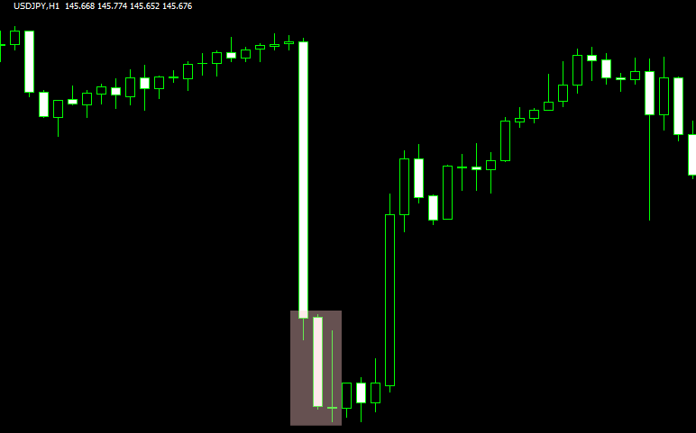 そのため、「本来FVGが生じてもおかしくないレベルの大きな陽線や陰線が出ているのに、FVGにはならずにヒゲで埋められているパターン」をImmediate Rebalanceと考えたほうが良いでしょう。