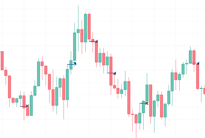 シグナルは2種類あり、Immediate Rebalance出現後、その方向にある程度伸びたら矢印、伸びずにダマシとなれば×のシグナルが出ます。