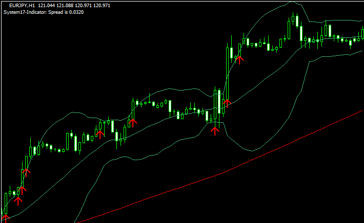 価格がMAよりも上にあって、ボリバンのσを上抜けたらロングサインが出るようになっています。(ショートサインは逆)