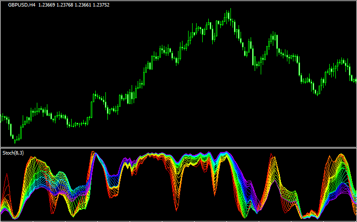 「虹」のように多くの数のストキャスティクスが同時に表示されるインジです。