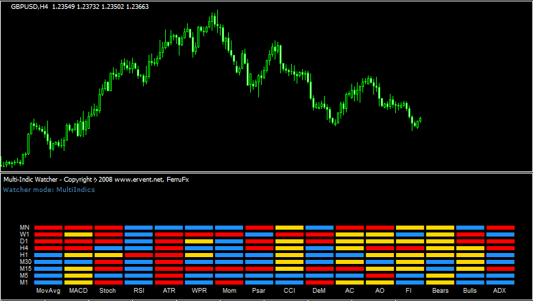 マルチタイム&マルチ通貨ペアでトレンド状況を一覧で表示してくれるインジです。