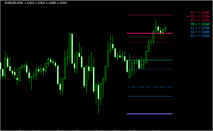 通常、ピボットは日足で算出するのが基本ですが、このインジを使えば、4時間足や1時間足をベースとしたピボットを表示させることが可能です。