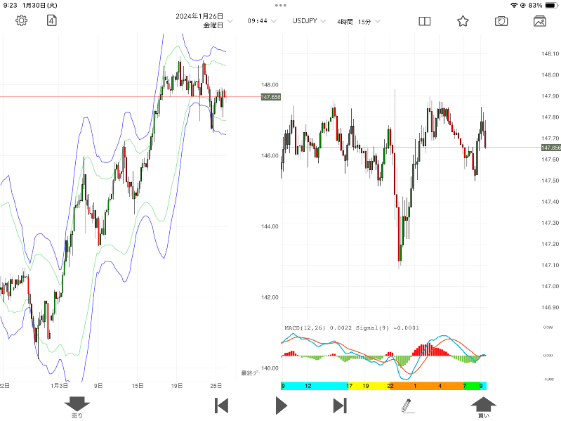 しかし、複数の時間足チャートを同時に動かすのが難しかったり、機能的にチャートの巻き戻しが出来ないなどのデメリットもあります。