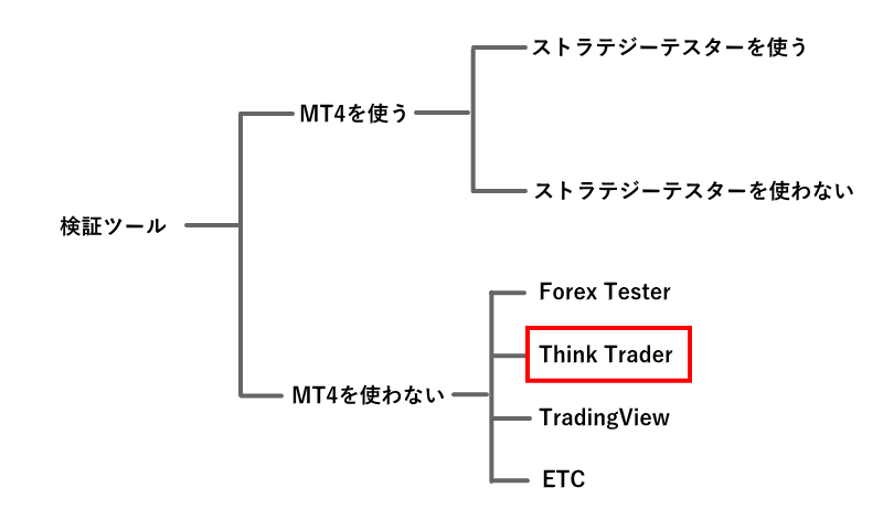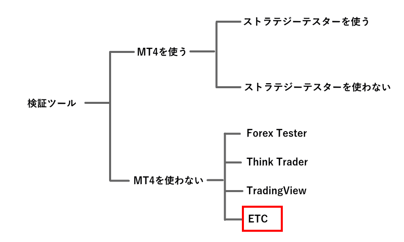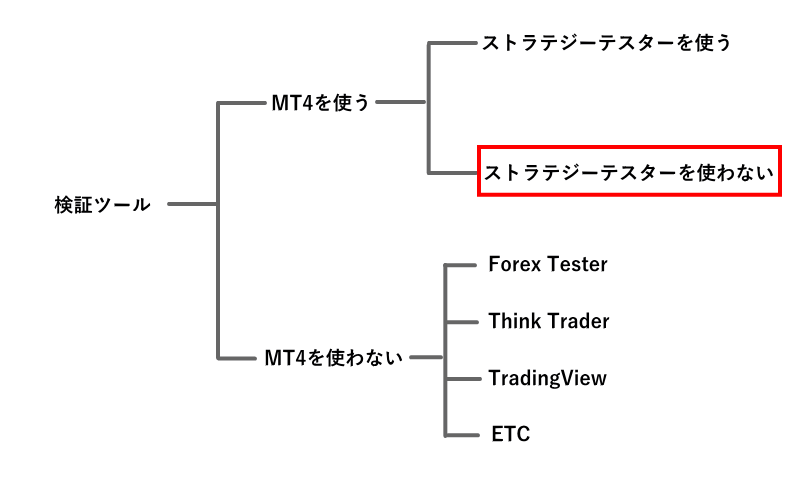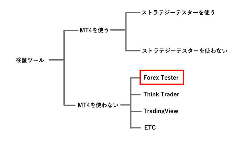 MT4を使わない検証ツールは、MT4ではない他のプラットフォームを利用して検証します。