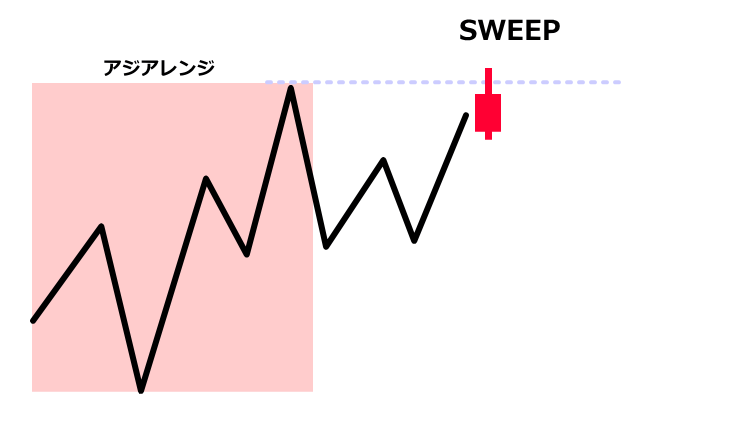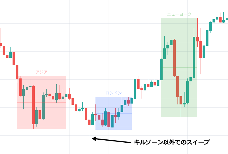 前のキルゾーンの高値や安値を実体でブレイクした時点でスイープとは判断しません。