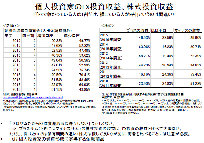 これは神戸大学大学院の岩壷教授の資料で、FX取引と株式取引の収益について比較しています。