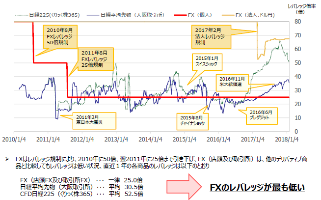 昨年2017年9月の終わりに、日経新聞より「金融庁がレバレッジを引き下げて、現行の25倍から10倍程度にまで下げることを検討している」という報道が出ました。