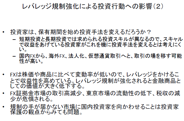 つまり、「FX取引は資産運用の一つとして確立されており、市場の安定にも寄与している、余計なことするな!」という意見です。確かにその通りです。