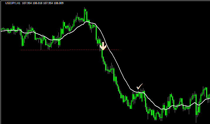 また、上位足のローソク足と移動平均線の位置関係からトレードしやすい通貨ペアなのかどうかを見極めることもできます。
