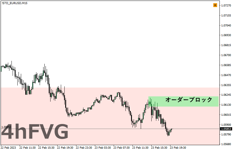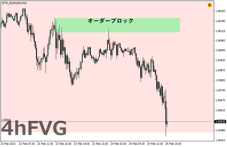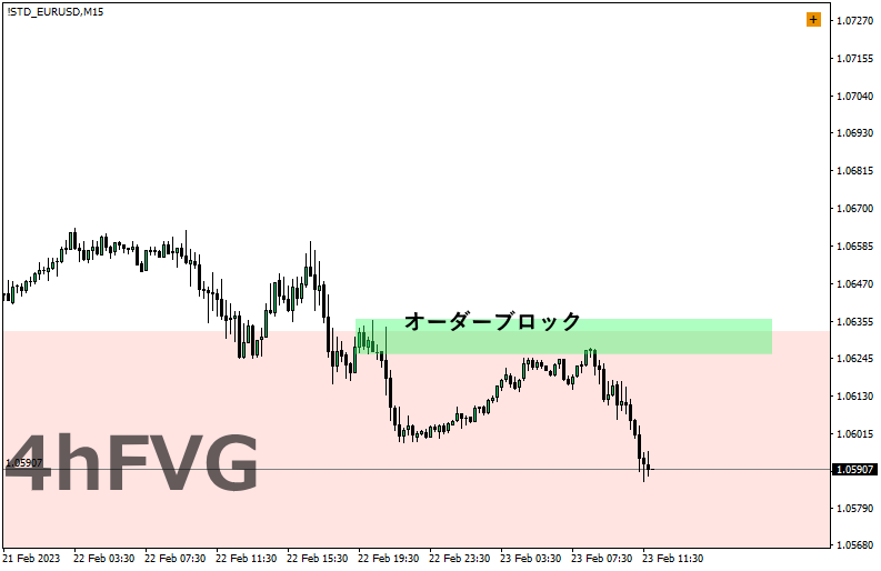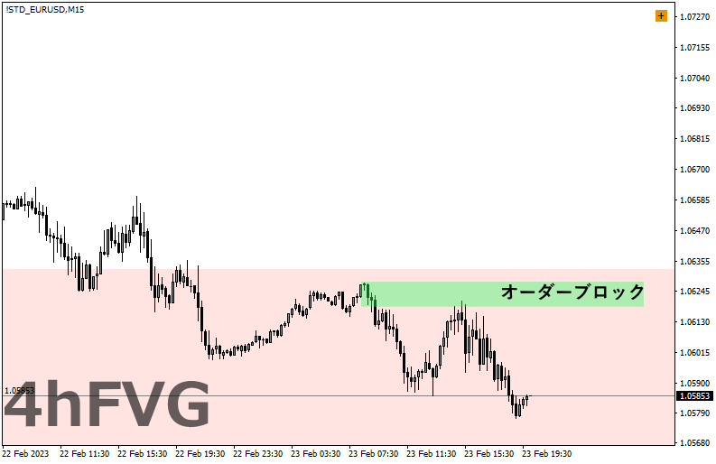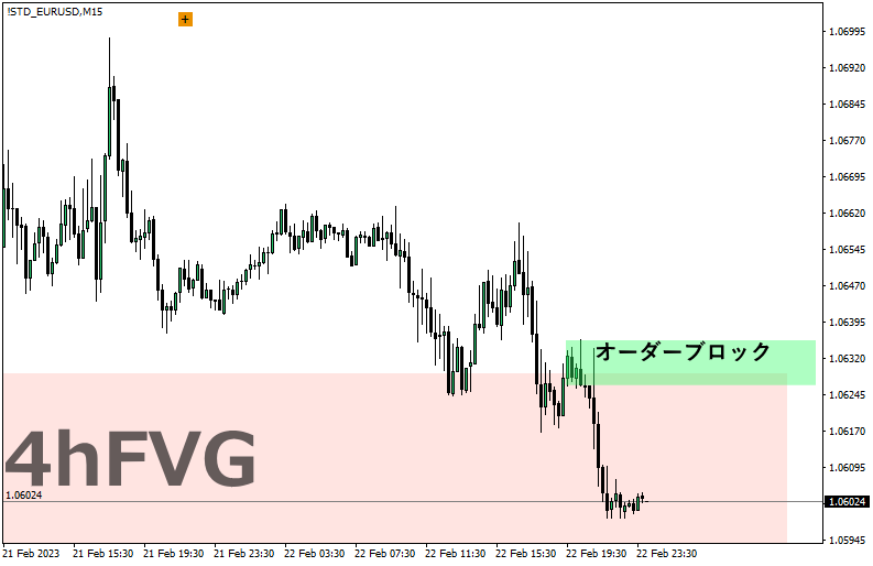 当然ながら、15分足でもしっかりと4時間足のFVGに入り込んでいます。