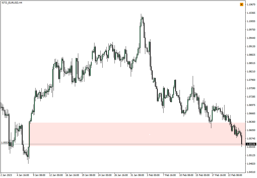 下のチャートはユーロドル4時間足です。これを上位足とします。