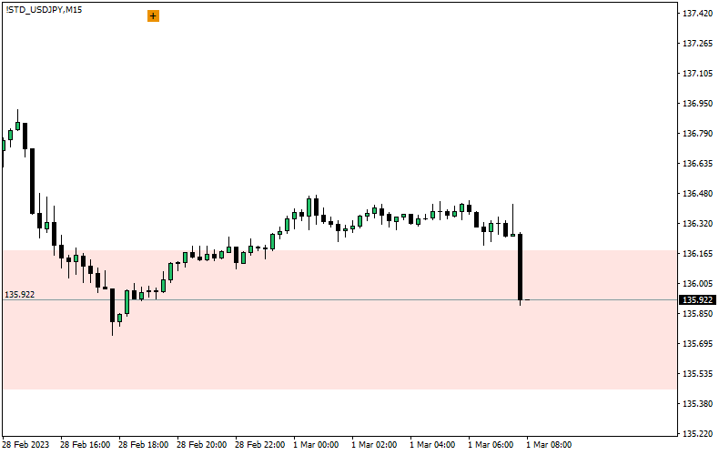 この15分足にオーダーブロックを表示すると以下のようなところになります。